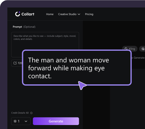 Use Collart AI Image to Video to turn photos into engaging social media content, ads, or storytelling videos. Bring product images, portraits, or designs to life with motion that captures attention instantly.